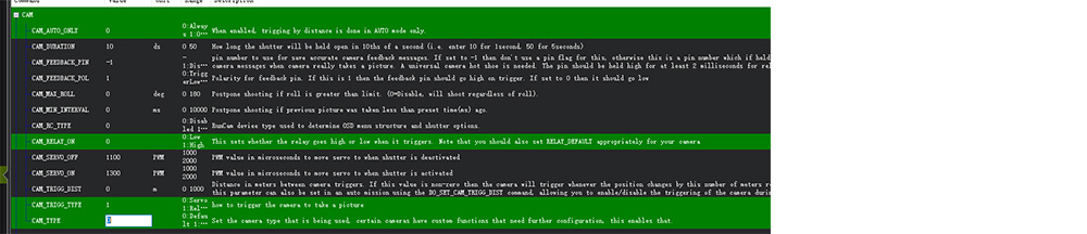 • PWM value in microseconds to move the servo when the shutter is activated. range:1000~20000(1=1us), default:1300