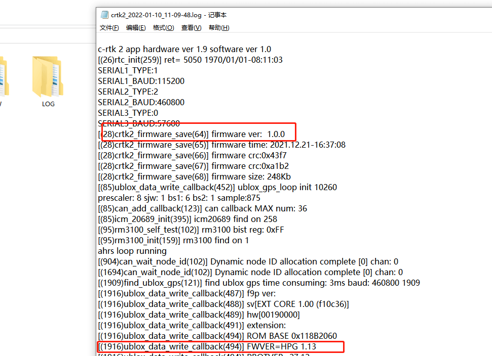 C-RTK 2 records the relevant operation information of C-RTK2 in the log file, such as C-RTK 2 and F9P firmware version.