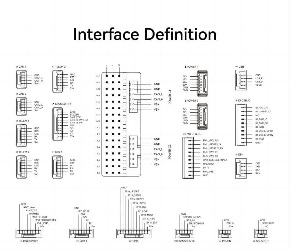 | POWER C1 | Please connect CAN PMU SE to this interface; this interface is connected to the UAVCAN power module |