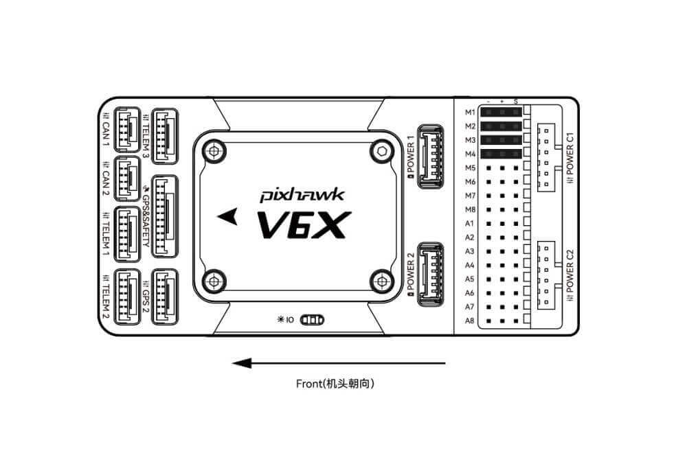 We recommend that you use Dronecan/UAVCAN GPS/RTK (such as Neo 3 pro); you only need to connect it to the CAN 1/2 interface; you can also use an ordinary GPS/RTK module; connect it to the GPS interface; it is commonly used now The GPS module generally integrates GPS, compass, safety switch, buzzer, and LED status light. The GPS module should be installed on the bracket and far away from other electronic devices. The installation direction is towards the front of the carrier (the NEO GPS arrow is in the same direction as the controller arrow)