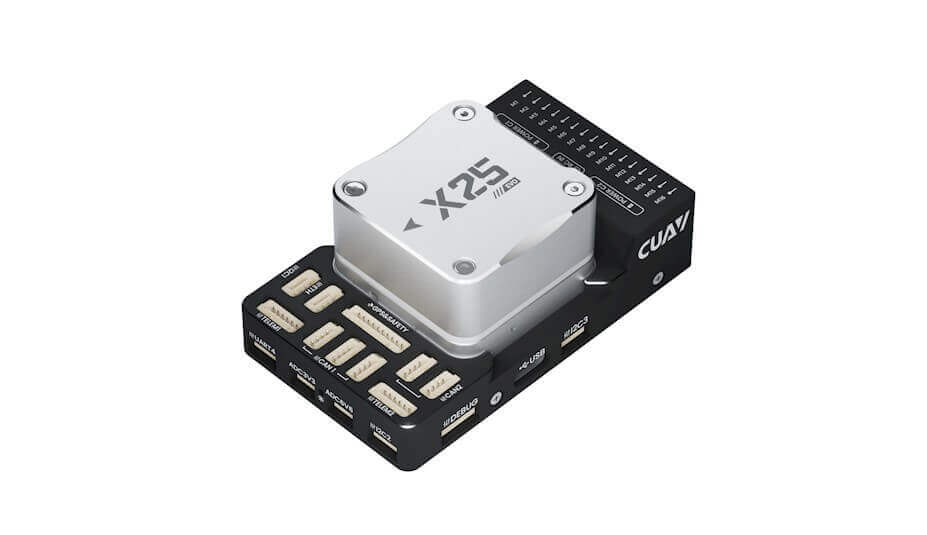 X25 EVO is a brand-new, high-performance, industrial-grade controller from CUAV. Compared with traditional controllers, X25 EVO has achieved breakthrough upgrades and optimization in aspects such as power rails, sensors, shock absorption systems, temperature compensation systems, hardware reliability, and device compatibility, significantly improving its performance and stability in complex environments and meeting the application needs of various unmanned systems. The X25 EVO incorporates numerous optimizations and innovations for professional, large-scale industrial unmanned systems and is fully compatible with ArduPilot/PX4 firmware. It can be widely used in unmanned systems, including multi-rotor, elevator, fixed-wing, VTOL fixed-wing, unmanned vehicles, unmanned vessels, and unmanned underwater vehicles.
