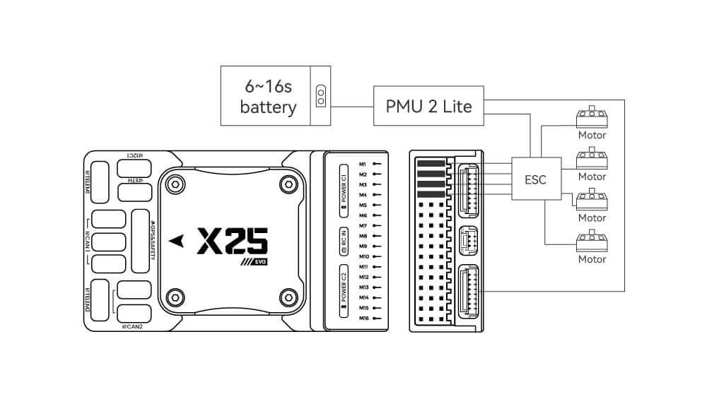 The X25 EVO comes standard with the PMU2 Lite power module, which supports 20–70V input and can measure a maximum current of 220A. It can be directly connected to the Power C1/C2 port of the X25 EVO and is plug-and-play (no configuration required).